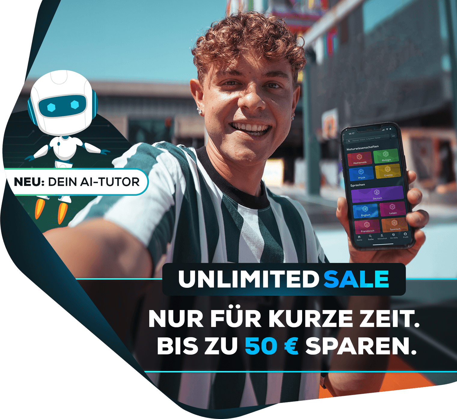 Hol dir alle Funktionen wie Hausaufgaben-Chat und AI-Tutor. Nur mit unlimited plus.